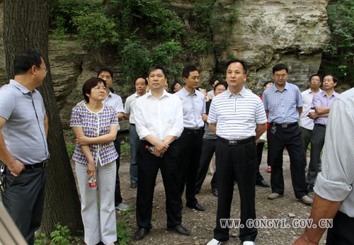 市委副書記馬志峰一行來到北莊村,用半天時間實(shí)地參觀了長916米的引水隧洞工程,親身感受了崎嶇艱險的引水山路,聽取了村黨支部書記楊小周帶領(lǐng)北莊村民克服困難鑿山引水的感人事跡。