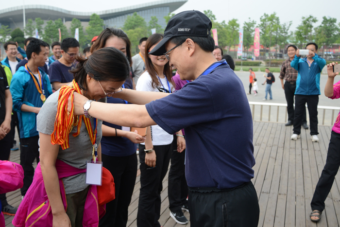 9點30分,健步走活動開始。40多分鐘后,60多名黨員干部一個不拉地走過終點。王耀等部領導分別給獲得男女前10名的同志頒獎。