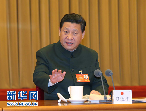 3月11日,中共中央總書記、國(guó)家主席、中央軍委主席習(xí)近平出席十二屆全國(guó)人大二次會(huì)議解放軍代表團(tuán)全體會(huì)議并發(fā)表重要講話。新華社記者李剛攝